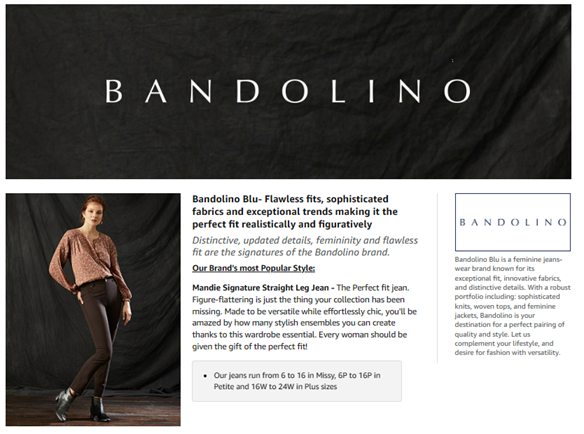• Bandolino is a feminine jeanswear brand known for its exceptional denim fit, innovative fabric and trend-right washes