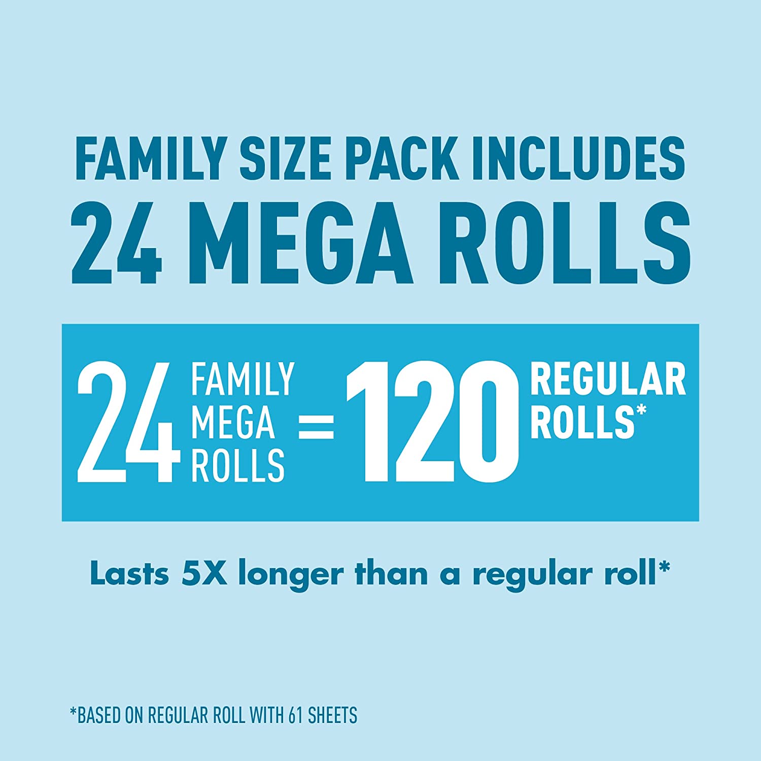 24 Mega Rolls = 120 Regular Rolls (based on a regular roll with 66 sheets)