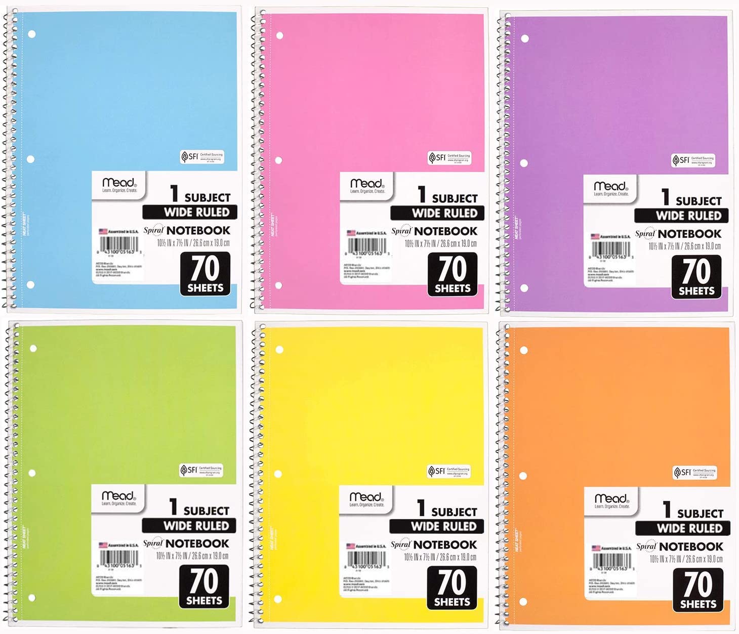Each notebook contains 70 sheets of Wide ruled paper perfect for a quarter, semester or special project.
