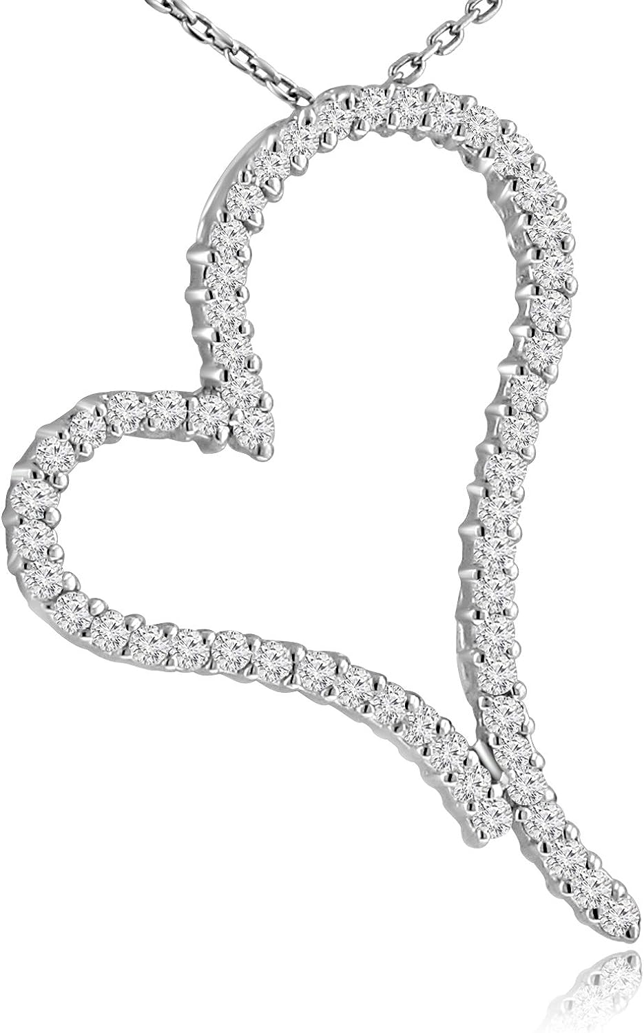 Madina Jewelry 1.30 ct Round Cut Diamond Heart Shape Pendant Necklace (G Color SI-1 Clarity) in 14 kt White Gold