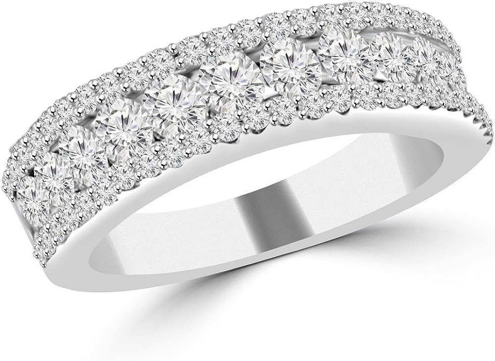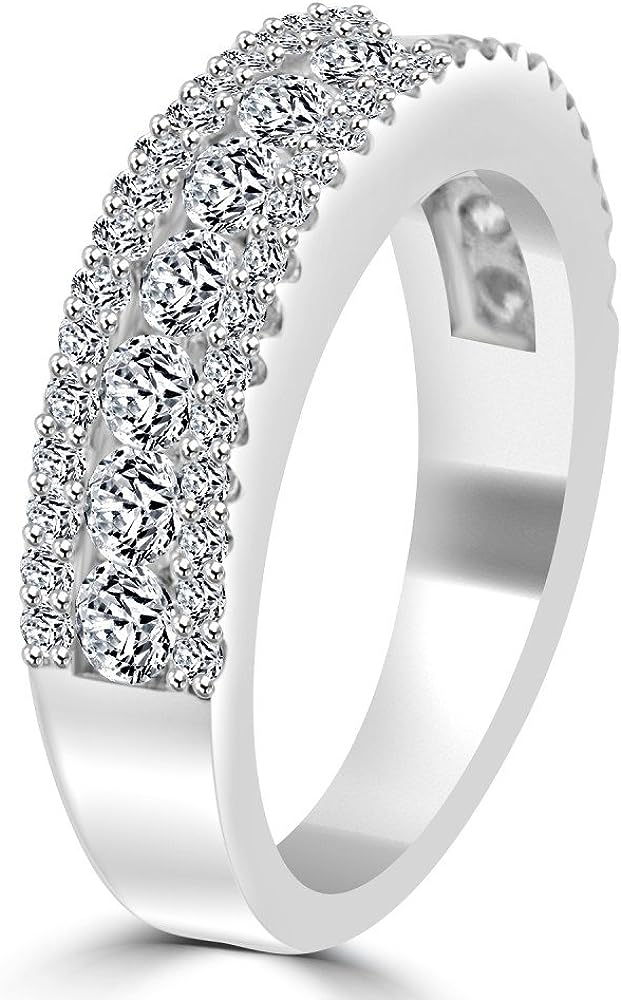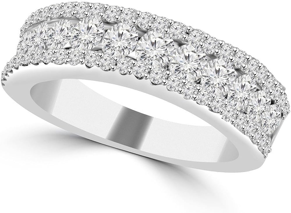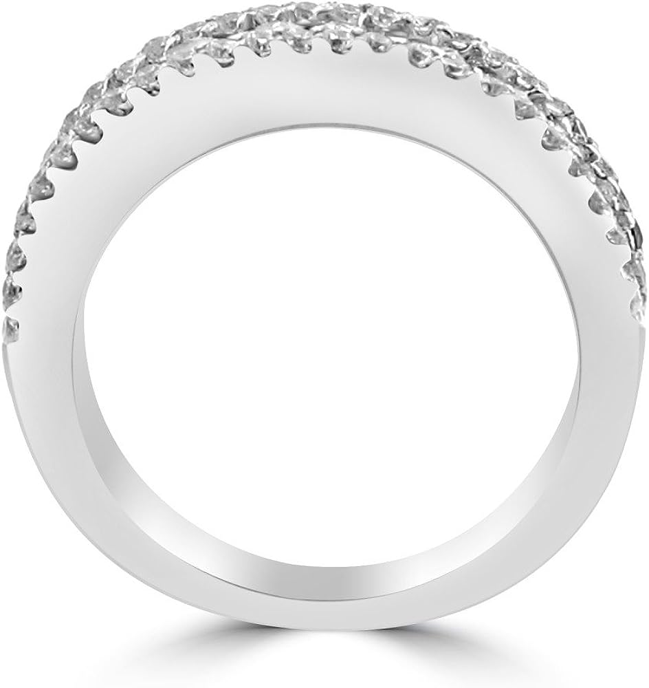 Madina Jewelry 1.16 ct Ladies Three Row Round Cut Diamond Wedding Band (Color G Clarity SI-1) in 18 kt White Gold