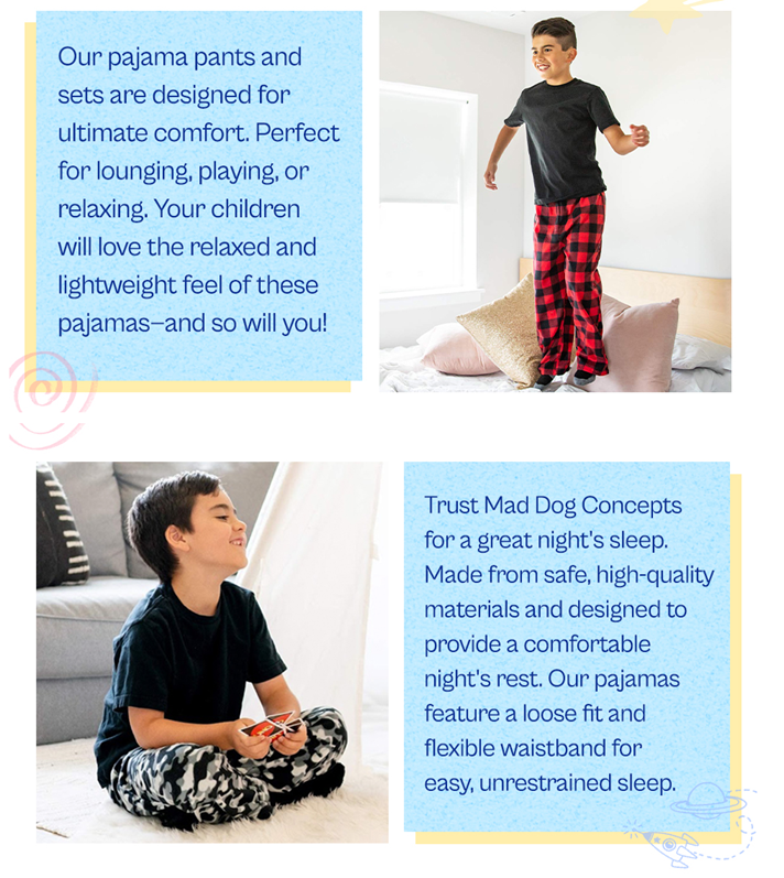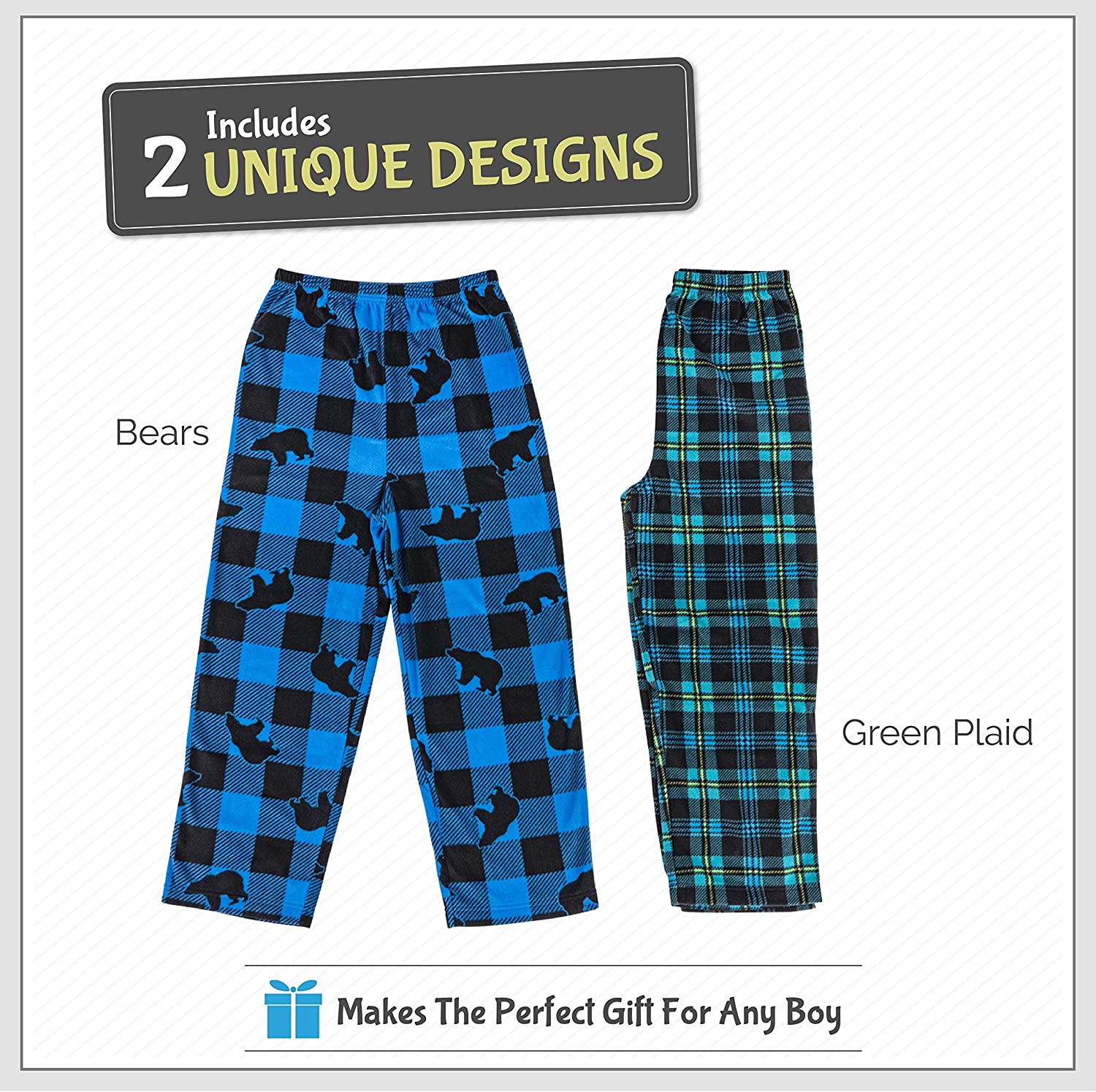 Warm & Comfy Microfleece: These boys' fleece pajama pants keep you warm and comfortable regardless of the weather. We have multiple prints offered in many colors to meet every Boy’s fashion needs. We make this pant set from 100% polyester, which is a flame-resistant material that meets all environmental, government, and safety standards.