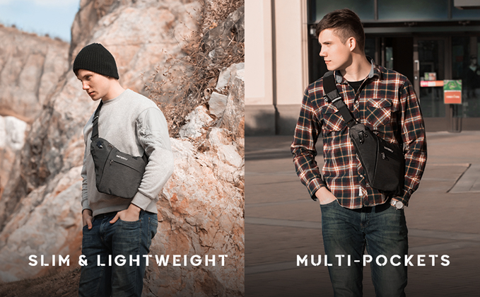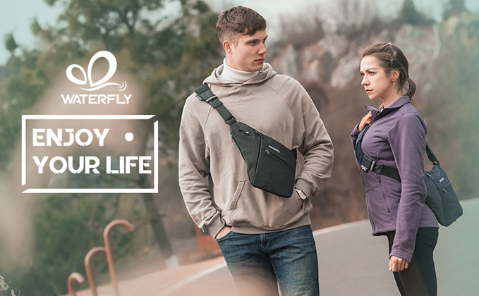 WATERFLY Sling Crossbody Chest Bag: Slim Anti-Theft Cross Body Bag Over Shoulder Backpack Stealth Side Pack Man Woman