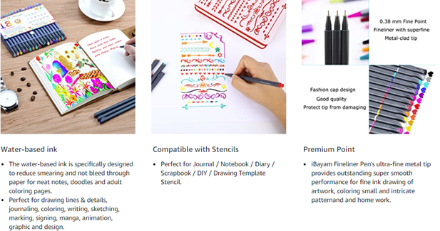 Lets you express yourself with true style and color. Available in 18 colors with an ultra fine tip. The iBayam fine liner marker pen set provides bold and expressive lines and is great for editing documents and papers. This writing instrument features point guard technology to protect the felt tip, as well as a water-based ink that doesn't bleed through paper.