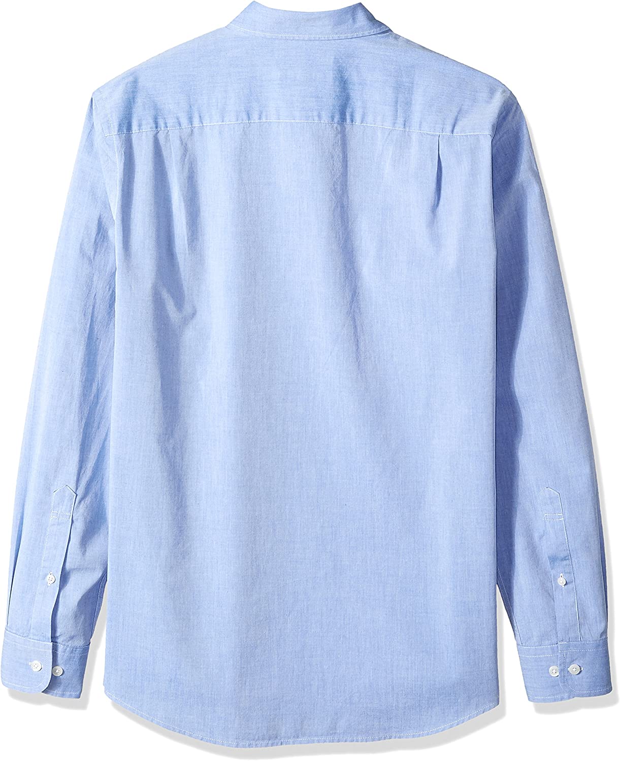 Spread collar, rounded barrel cuffs, straight back yoke with side pleats