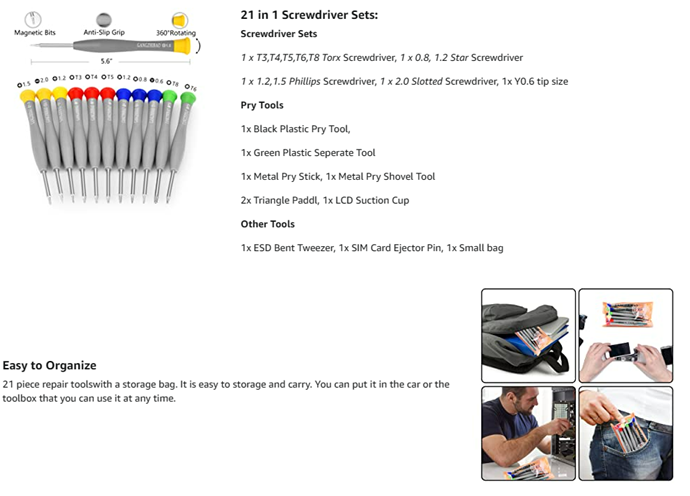- 【 SAFETY 】 for your personal equipments : fix by yourself with this professional-grade repair kits to protect privacy from strangers; you needn't to ask help from friends or wait for repairing technician or look for a repair center. This electronics repair tools kits can not only save your money and time but protects your personal privacy!