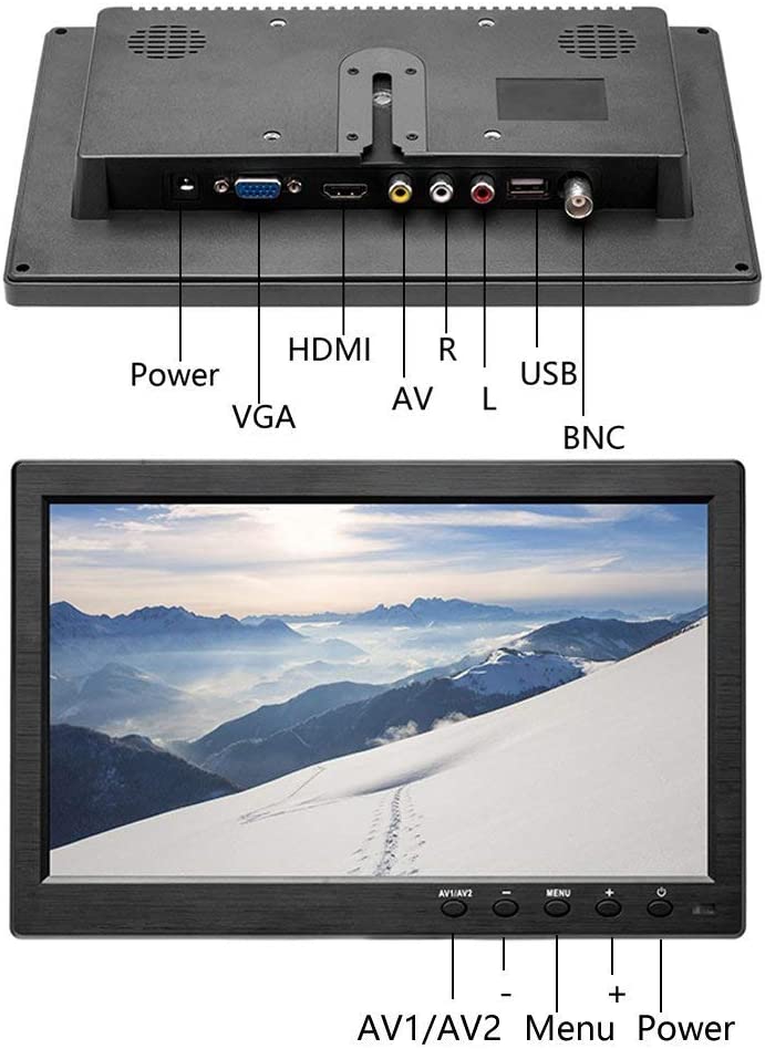 ✔️【Portable & New Design】10.1 inch monitor is very portable and easy to use. The small monitor that sports a four-sided slim bezel design. Its IPS panel has a full-HD 1024*600 resolution, aspect ratio 16:9. With NTSC / PAL video color system. Brightness and Contrast can be adjust, you will get much richer colors and clear viewing angles that are near horizontal