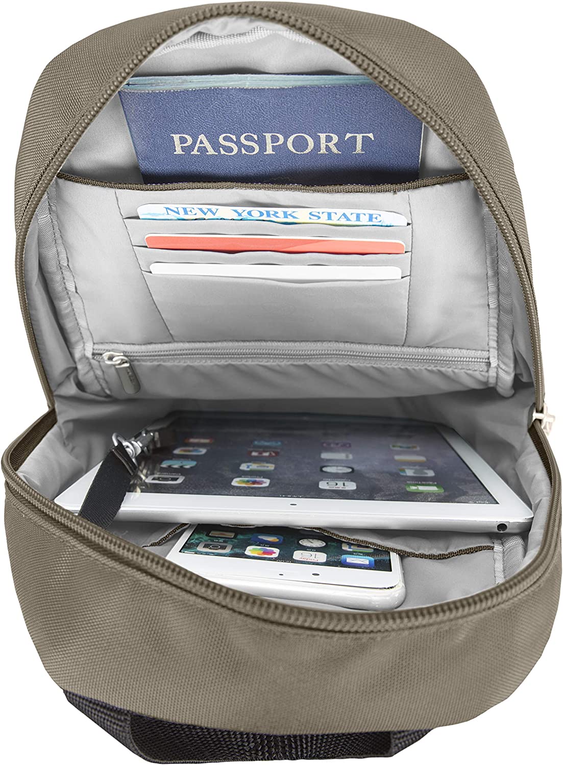 Tethered key clip with LED light in main compartment, 5-Point Anti-Theft security system