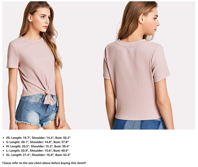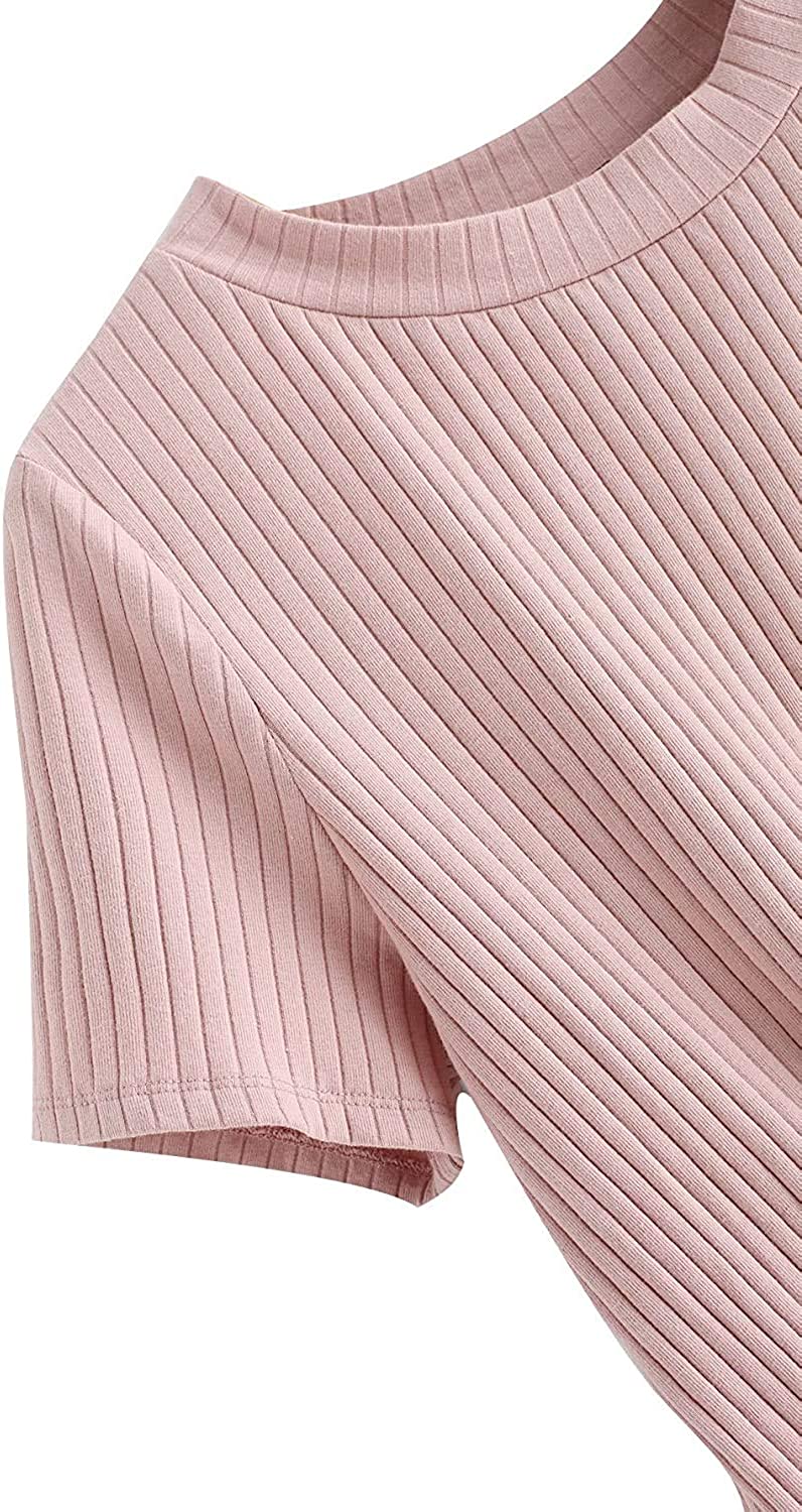 Romwe Women's Cute Knot Front Solid Ribbed Tee Crop Top T-Shirt