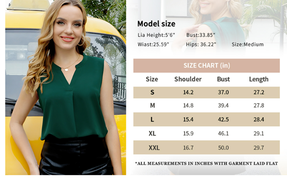 The fabric is made of 100% polyester.When wearing these sleeveless blouse for women, you will feel that the fabric is silky smooth and skin friendly.
