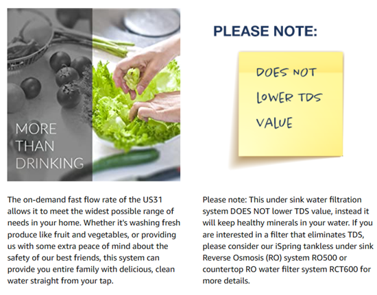 - [TDS Note and Customer Services]: This under sink water filter will not reduce the TDS of the incoming water. Instead, it keeps the healthy minerals in your water. If you are interested in a filter that removes TDS, please consider a Ispring reverse osmosis system.Backed by a 1-year Manufacturer with lifetime support from Atlanta, GA USA. For any issue or concern, please don't hesitate to contact us.
