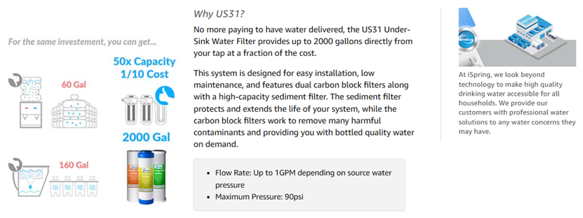 - [Fresh Healthy Water Supplier]: The on-demand fast flow rate of the iSpring US31 allows it to meet the widest possible range of needs in your home. Up to 20x more effective than the common water pitcher dispenser. Flow Rate: Up to 1GPM depending on source water pressure. Maxim Pressure: 90psi. It washes fresh produce like fruit and vegetables, brings health protection, can provide your entire family with delicious, clean water straight from your tap.