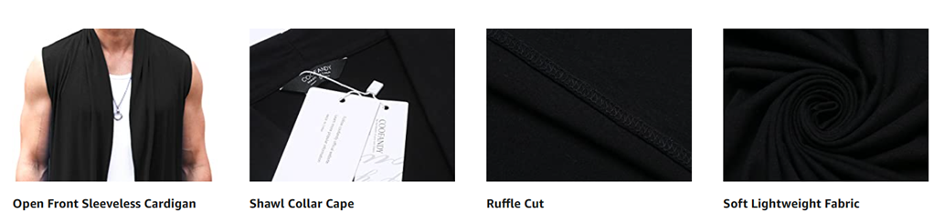 COOFANDY Men's Ruffle Shawl Collar Cardigan Sleeveless Open Front Vest Cape