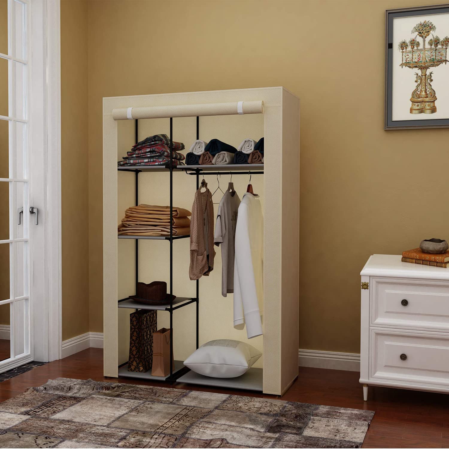 Heavier Loading Capacity: The diameter of metal tube is strengthened to 16mm,which makes this clothes storage wardrobe bear much heavier load and more durable while using.