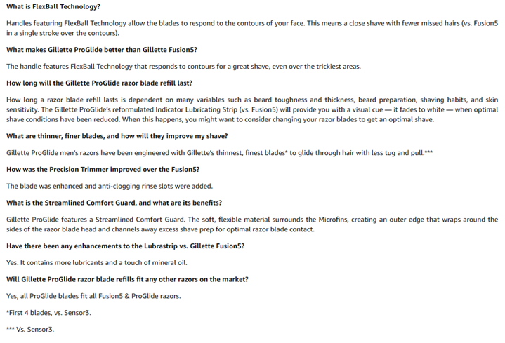The Gillette ProGlide men's razor with FlexBall technology responds to your contours giving you uncompromising closeness and comfort. The handle’s FlexBall technology responds to contours and the blade refill features 5 antifriction blades for a shave you can barely feel. The blades are spaced closely together for incredible comfort with a precision trimmer on the back for hard to reach places and for styling your facial hair just the way you want it. The enhanced lubrastrip (vs. Fusion5) has more lubricants for comfort and glide. This enhanced lubrastrip also fades when you are no longer getting an optimal shave. Soft microfins gently stretch and smooth your skin to prepare hairs for a close shave while a microcomb helps guide your hair for a close shave from our thinnest blades. The ProGlide razor for men features our sharpest blades (first 4 blades) which help get virtually every hair effortlessly. One razor blade refill lasts up to one month of shaves. All ProGlide blade refills can fit all Gillette 5 blade razor handles (excluding GilletteLabs).