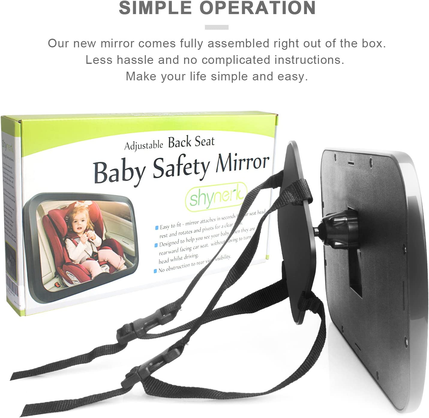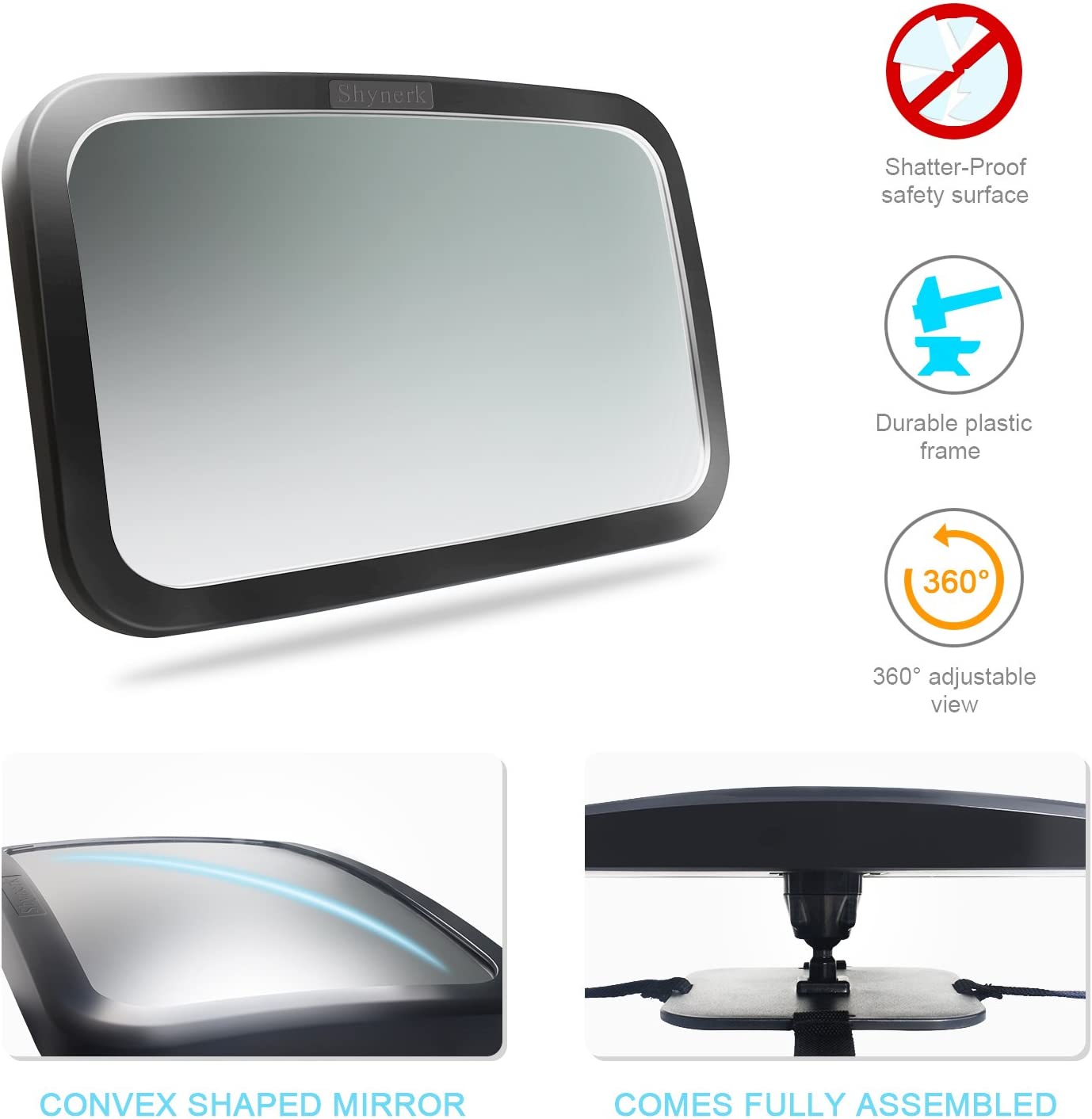 Shynerk Baby Car Mirror, Safety Car Seat Mirror for Rear Facing Infant with Wide Crystal Clear View, Shatterproof, Fully Assembled, Crash Tested and Certified
