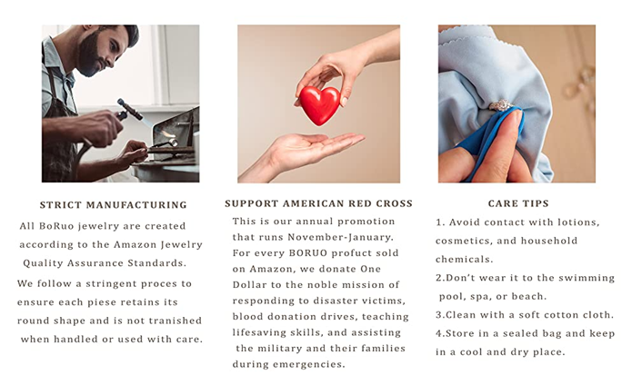The BoRuo Advantage: BoRuo is a member of a very small number of brands invited to the Amazon Fine Jewelry category and all our products meet amazon Jewelry Quality Assurance Standards. Only those with brand strength and excellent products are eligible to enter this prestigious level.