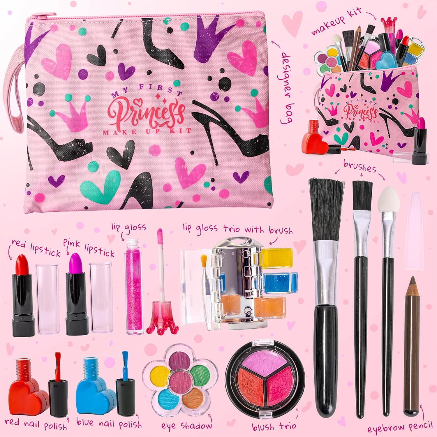 ??? 23 ???? ?????? ????? ??? ????? ????????, Delight your little princess with A COMPLETE toy makeup set for girls, includes a blush trio, glitter lip gloss, 2 additional lip glosses, 2 lipstick, 6 eye shadow, 2 nail Polish, eyebrow pencil, 3 brushes, designer carrying Cosmetic Bag for easy storage