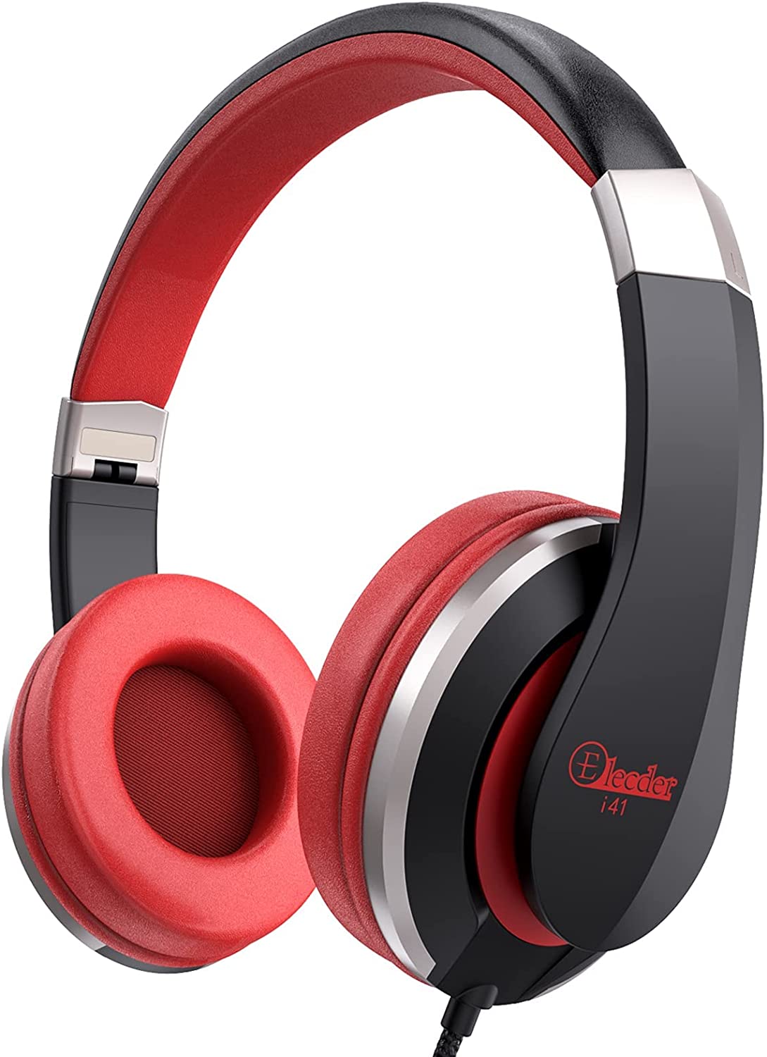 ELECDER i41 Kids Headphones, Headphones for Kids Children Girls Boys Teens Foldable Adjustable On Ear Headphones with 3.5mm Jack for Cellphones Computer MP3/4 Kindle School(Red/Black)