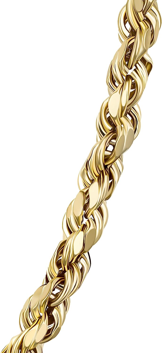 SAFE-TO-WEAR 100% HYPOALLERGENIC: Our jewelry is made of lead and nickel-free materials, these durable, high-quality 10k gold rope chains are safe even for sensitive skin, and won't cause rashes or breakouts.