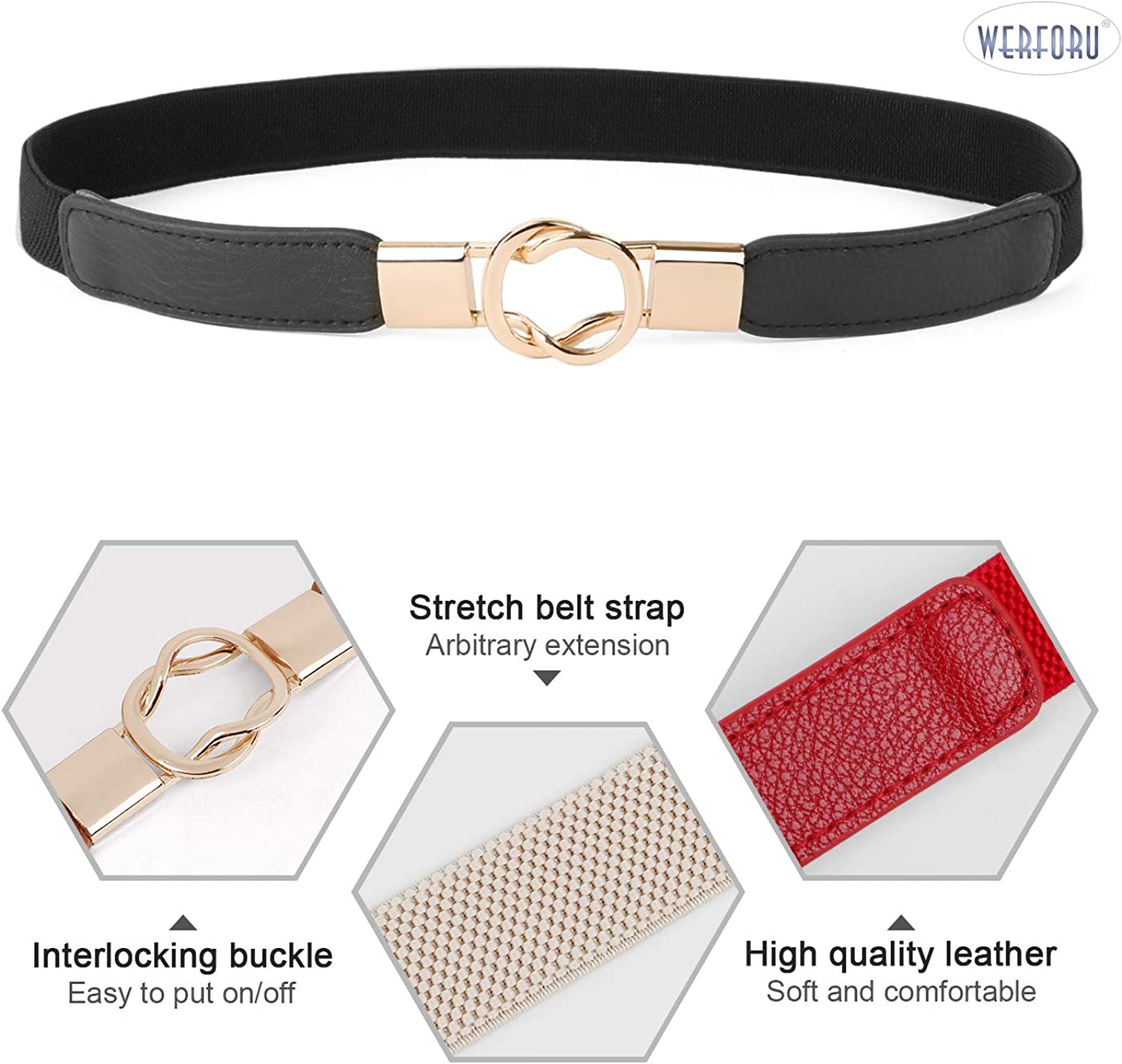 ✨ Stretchy strap --- Our women skinny waist belt is of great elastic that allows stretching from small size to plus size. The belt leather is soft and comfortable with special pattern, a nice fashion accessory for girls ladies dresses.
