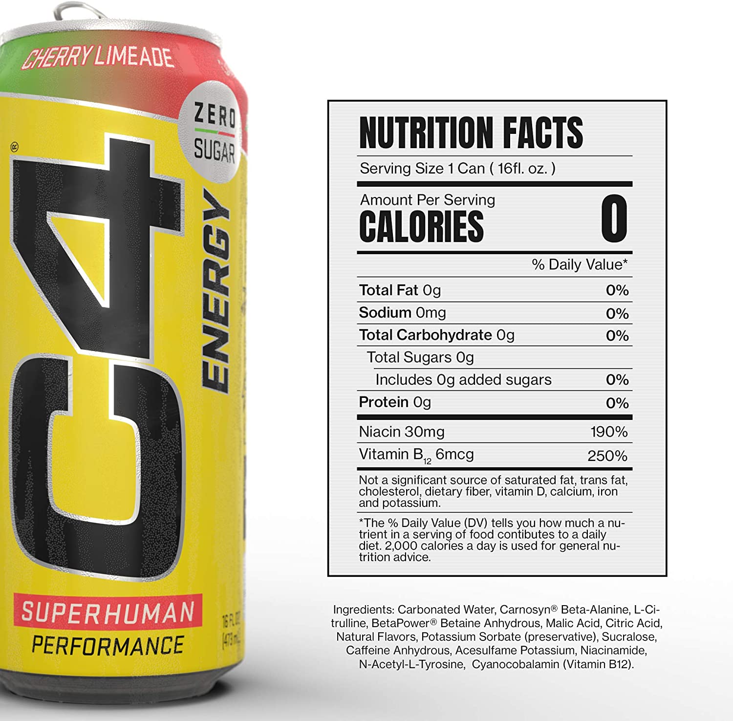 C4 Original Sugar Free Energy Drink 16oz (Pack of 12) | Cherry Limeade | Pre Workout Performance Drink with No Artificial Colors or Dyes
