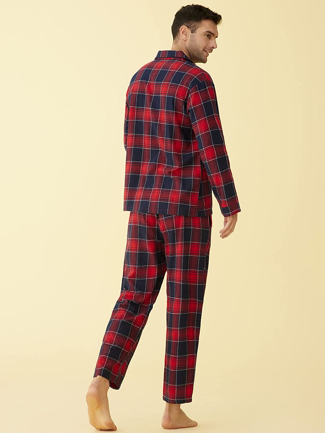 Latuza Men’s Cotton Flannel Pajama Set Plaid Sleepwear