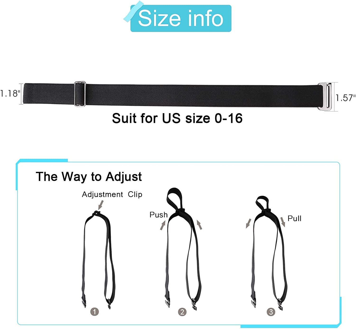 • ☘ Adjustable Size--- It’s so convenient and easy to adjust by moving the adjustment clip like a bra strap to make it tighter or looser. Buckle length:1.57”, belt width:1.18”. Suits for US size 0-16+;