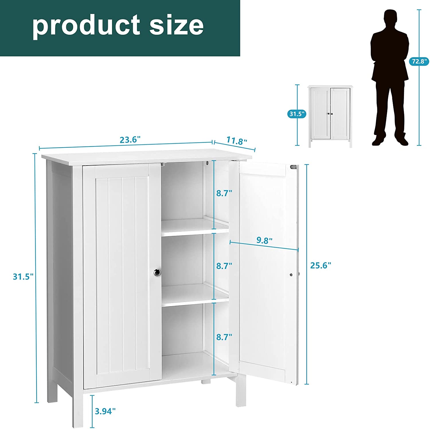 【Selected Material】--This standing cabinets with doors is constructed of durable upgraded P2 MDF( Medium Density Fiberboards) prevents moisture & water-resistant wooden material is suitable for humid environment, to keep your items and for long-term use