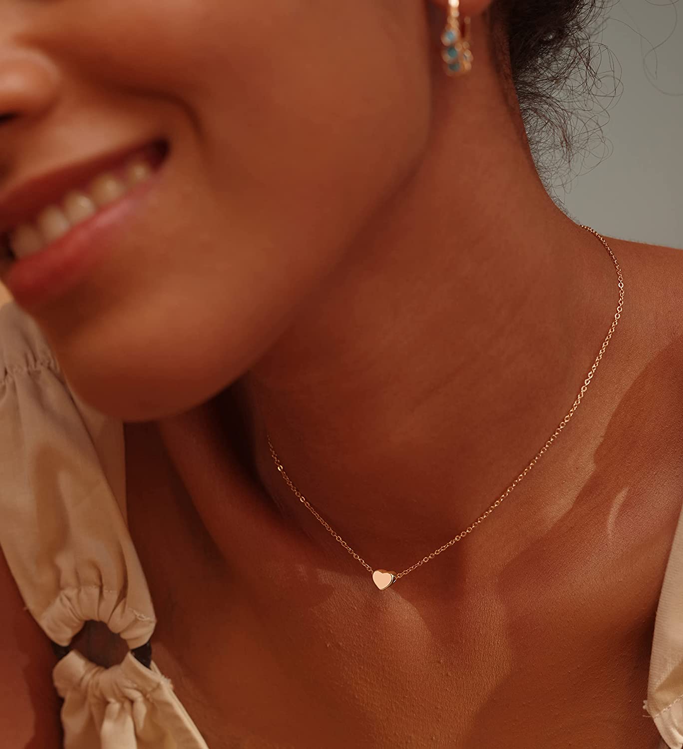 【MATERIAL】:INITIAL NECKLACE-The necklace engraved with alphabet(from A to Z),14k Gold Plated, 1Pcs charm necklace, minimalism style, small heart pendant necklace.