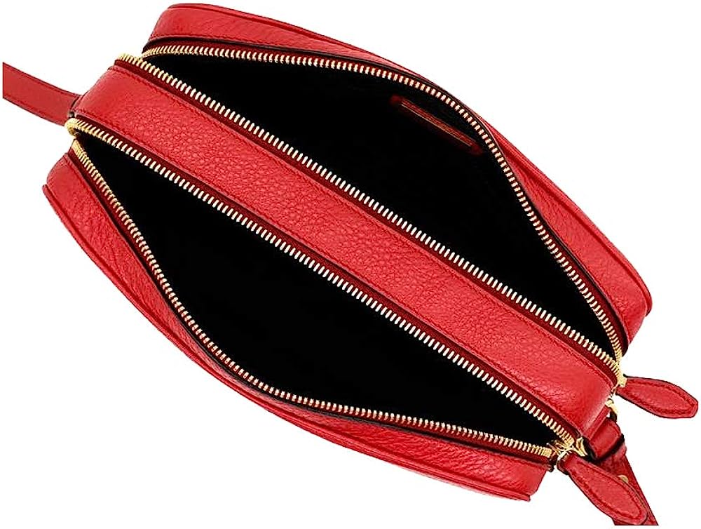 Red leather crossbody with gold-tone hardware.