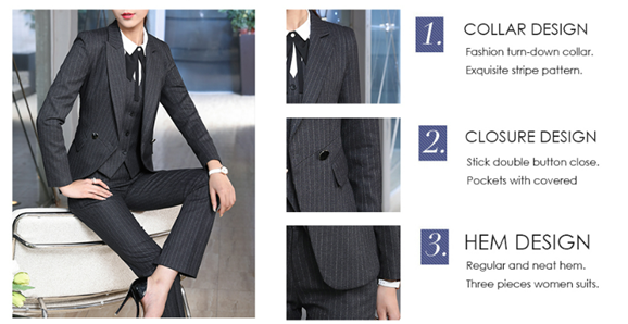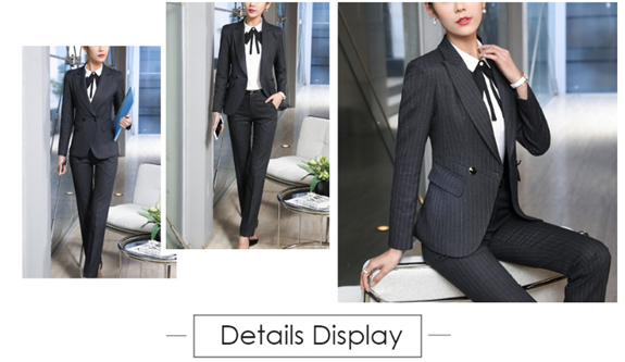 • 【Top】-Fashion notched lapel,and thick shoulder pads.Exquisite and stick double closure fasten the suit.Practical front pockets with covered placket.Simple long sleeve cuffs design,unique strip pattern design,waisted,regular and neat blazer hem,single-breasted button vest.