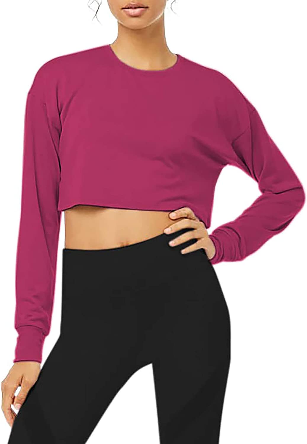 Match: Cropped long sleeve tops comfortable enough to wear for a night out, lounge or at the gym. If you shy about show your belly, high wasited leggings is a good choice for you