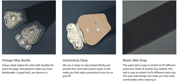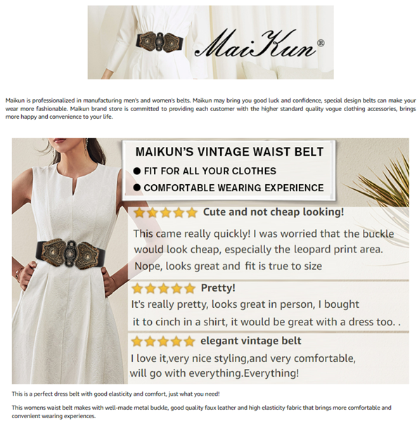 • Material&Buckle: Elastic web imitation leather waistband (Polyester + Spandex). Solid alloy interlocking buckle, it's convenient to wear.