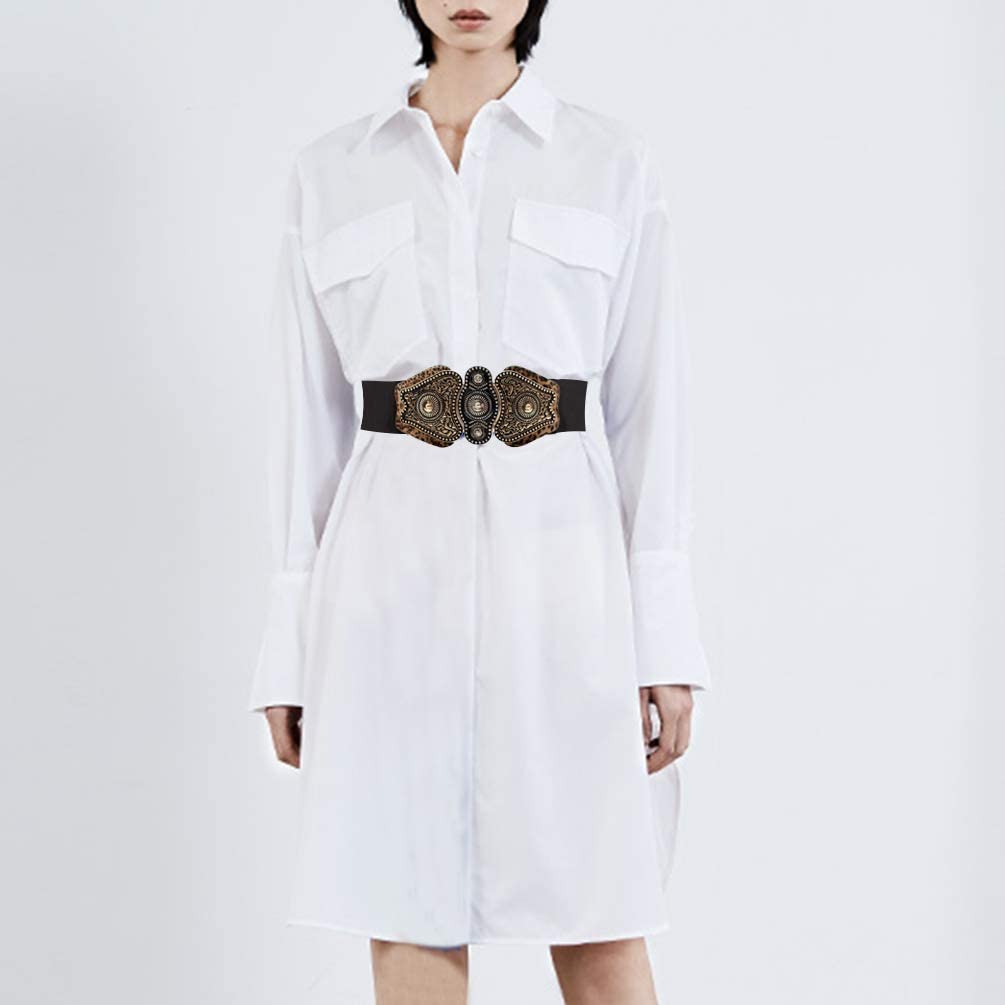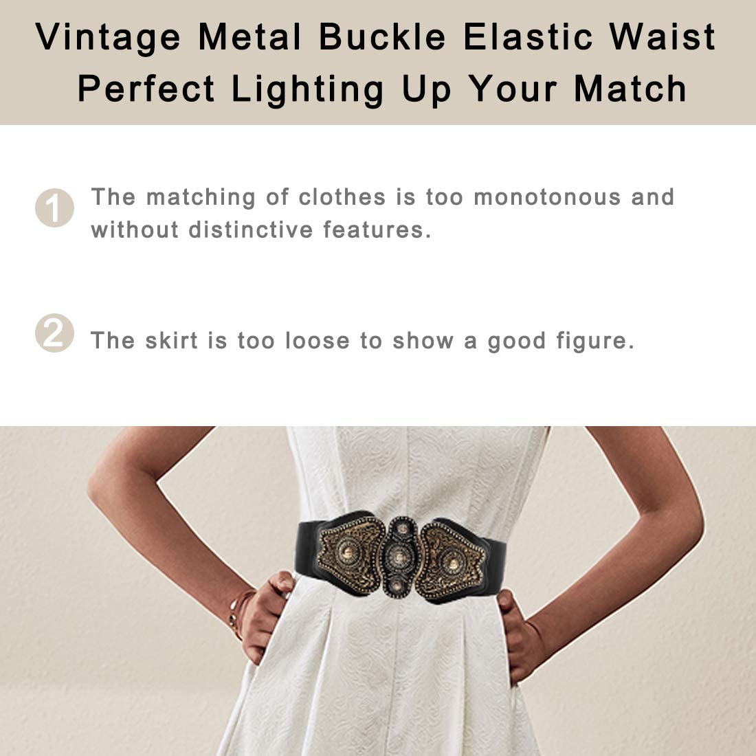 maikun Women's Wide Stretch Elastic Waist Cinch Belt Fashion Vintage Metal Buckle Dress Belt Christmas