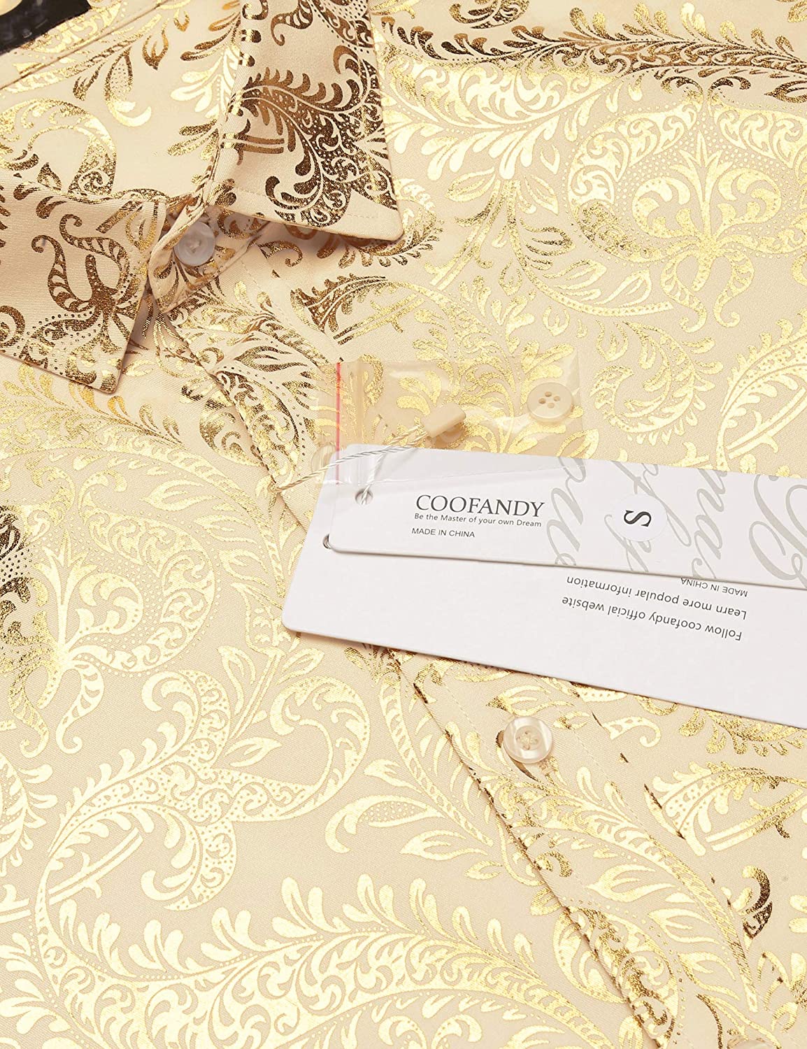 - Elegant Gold Floral Printed Dress Shirts: Crafted from hand selected material, this long sleeve shirt has been elaborately tailored for a comfortable regular fit. Clean and understated designs give an instant touch of effortless cool.