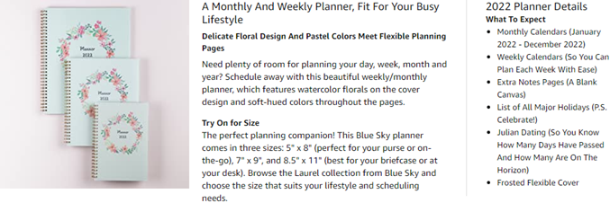 Bring order to your busy life with the Laurel Planner and its springtime motif to give your schedule a fresh start. Thick, premium-quality pages reduce ink bleed-through to ensure your writing stays legible. Two-page-per-week spread features ruled, daily blocks for easy handwriting. Monthly view per two-page spread includes a notes section for important projects. Monthly tabs are coated for durability. Durable, frosted flexible front cover keeps your pages protected throughout the entire year. Double-wire binding allows easy page-turning. Six bonus monthly views allow you to make easy yearly transitions. Planner also includes pages for yearly goals, contacts, reference calendars and extra notes pages. 12-month planner ranges from January to December.