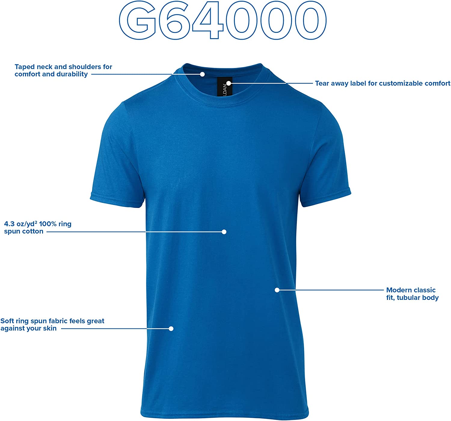 Gildan’s Adult Softstyle Cotton Tee G64000 has the perfect combination of softness and durability to ensure it stands the test of time. Made of 100% ring spun cotton with a modern classic cut, it’s perfect for lounging on the couch or going to a movie. Its soft smooth fabric is perfect for screen printing, embroidery, DTG, bleaching and tie dyeing.