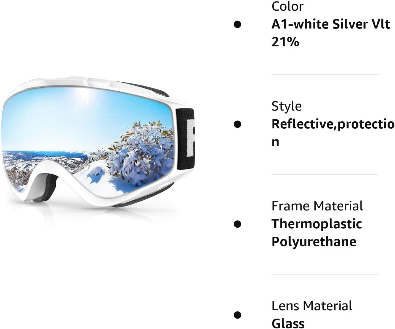 【High Performance Dual Lens】- Anti-scratch, anti-fog, anti-impact, full face real revo mirror coated reflective lens, 100% UV protection, stronger and more durable than other ski goggles. Inner lens features PRO long-lasting anti-fog performance material that works in conjunction with the ventilation system. No fogging while skiing or snowboarding. Exceptional Optical Clarity Ball lenses and frameless design create an ultra-wide-angle HD field of view.
