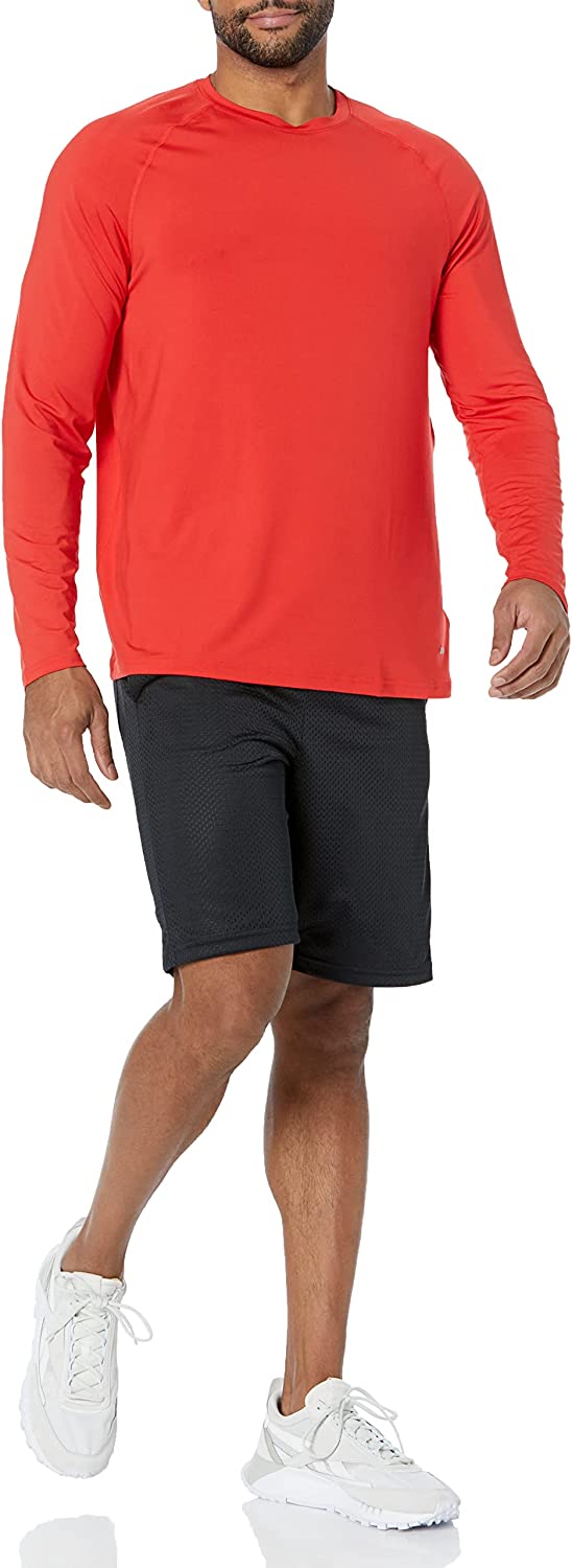 A bit of stretch and accent seams add comfort and style to this essential long-sleeve t-shirt featuring tech-stretch fabrication and moisture wicking capability