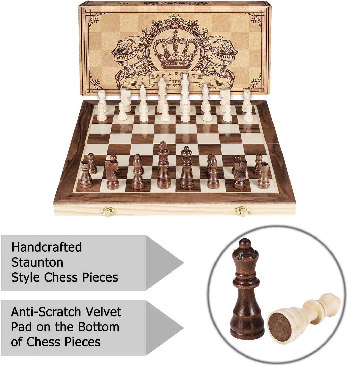 - PREMIUM QUALITY - Handmade with high quality wooden material, the smooth surface of the entire chess board ensures optimal touch comfort while playing chess and checkers game. 2 extra queens are added to the board as free accessories at your disposal