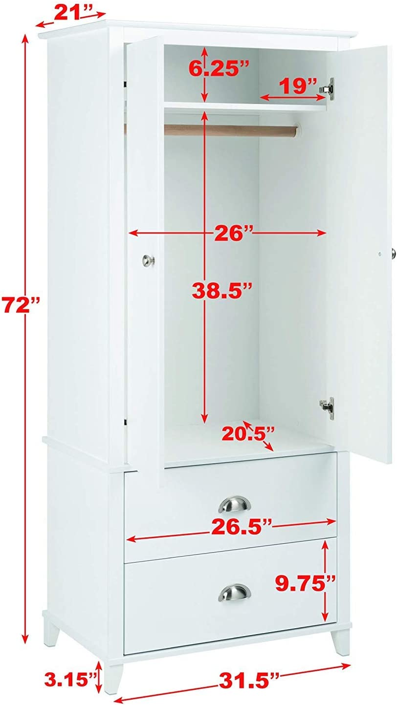 Prepac Yaletown 2 Door Armoire, 21"D x 31.5"W x 72"H, White