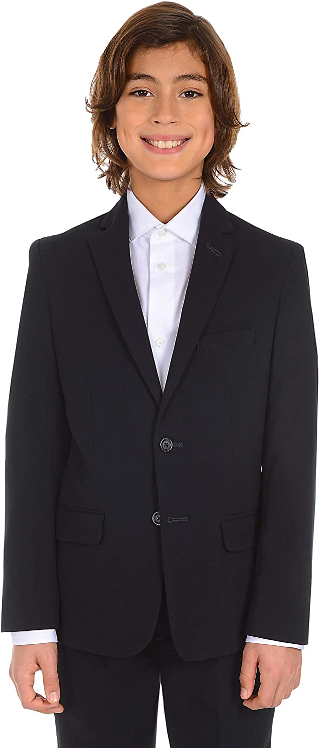 Calvin Klein Boys' Bi-Stretch Blazer Suit Jacket, 2-Button Single Breasted Closure, Buttoned Cuffs & Front Flap Pockets