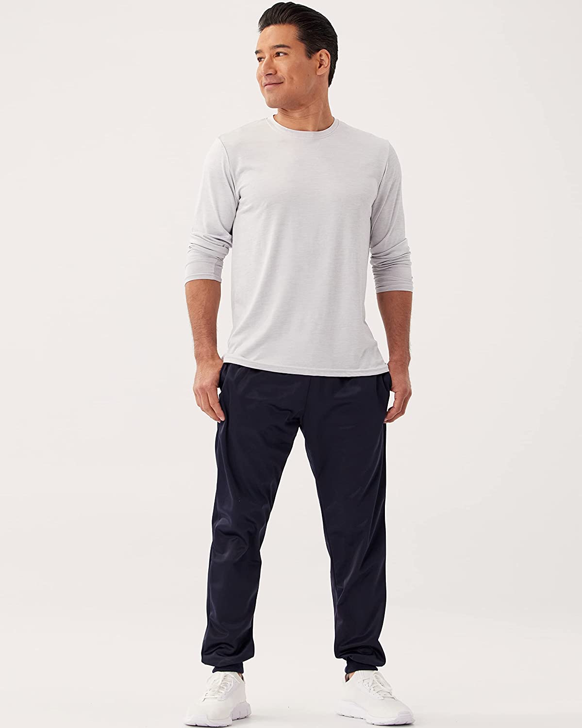Designed for a comfortable experience. Crew-neck provides a nonrestrictive fit; Long-sleeve allows for a wider range of motion