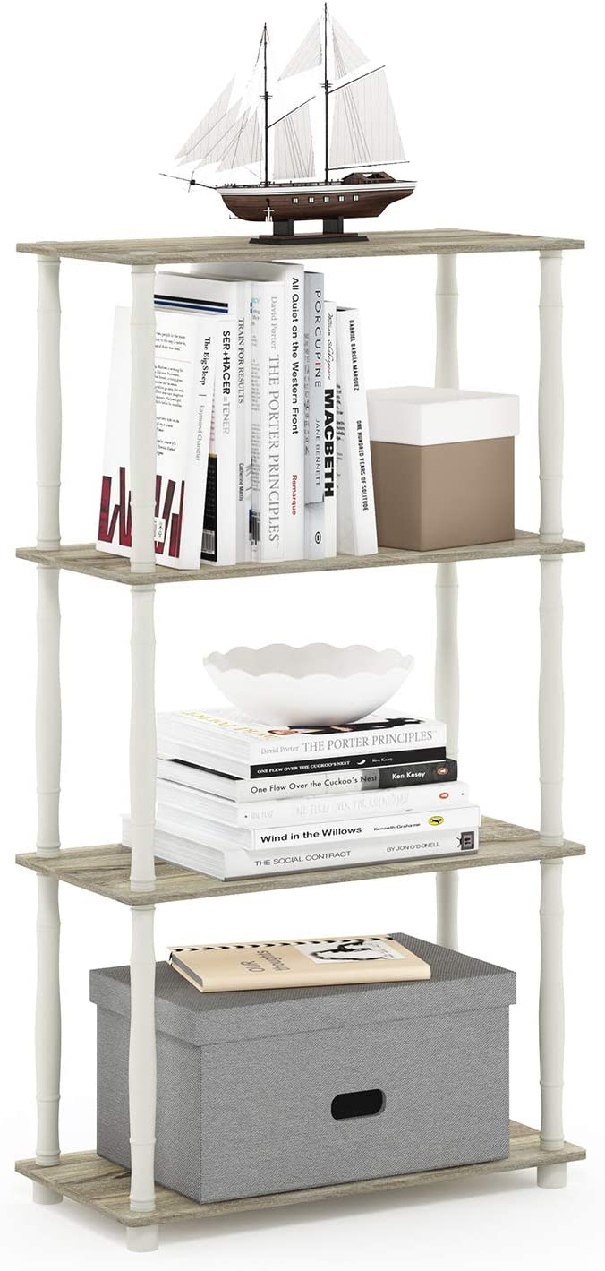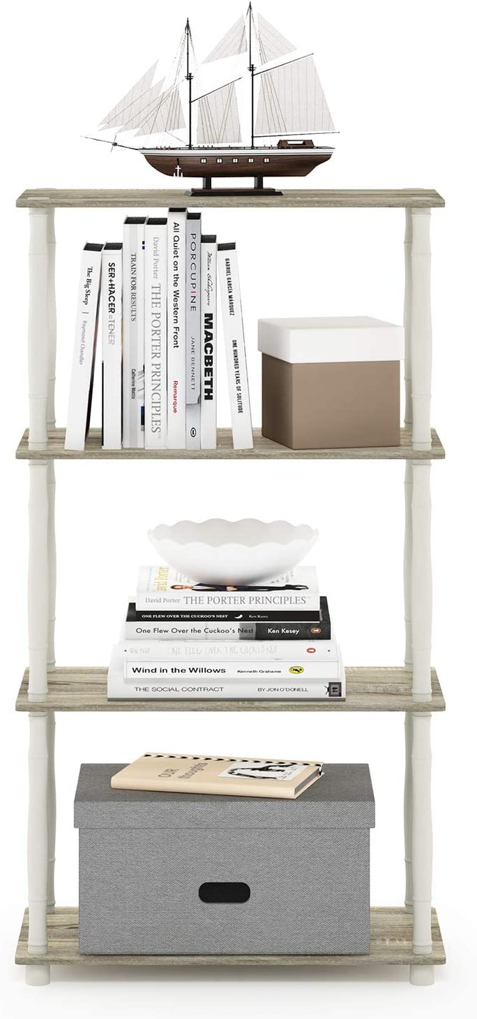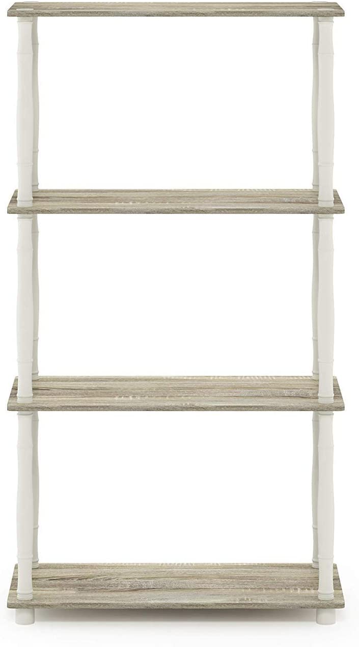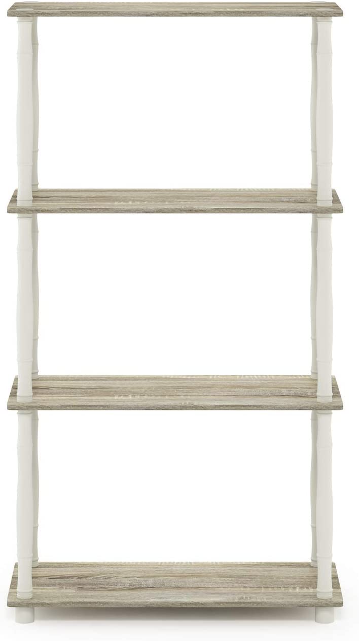 Furinno Turn-N-Tube 4-Tier Multipurpose Shelf Display Rack, Classic Tubes, Sonoma Oak/White