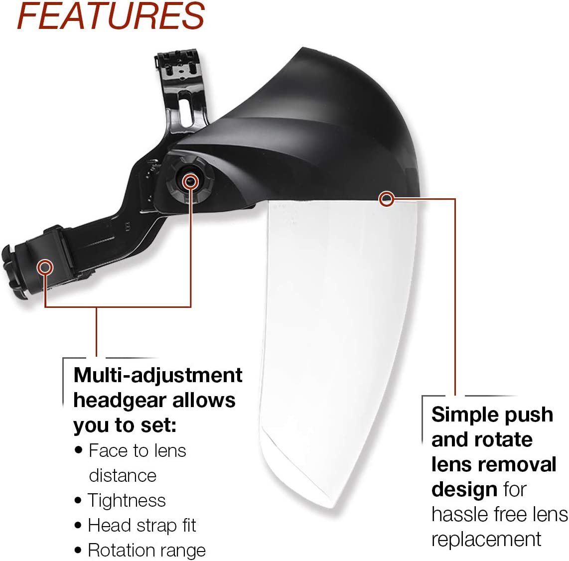 IMPACT PROTECTION - High density clear polycarbonate lens is 190% thicker than a standard face shield (0. 077" vs 0. 040") for enhanced protection.