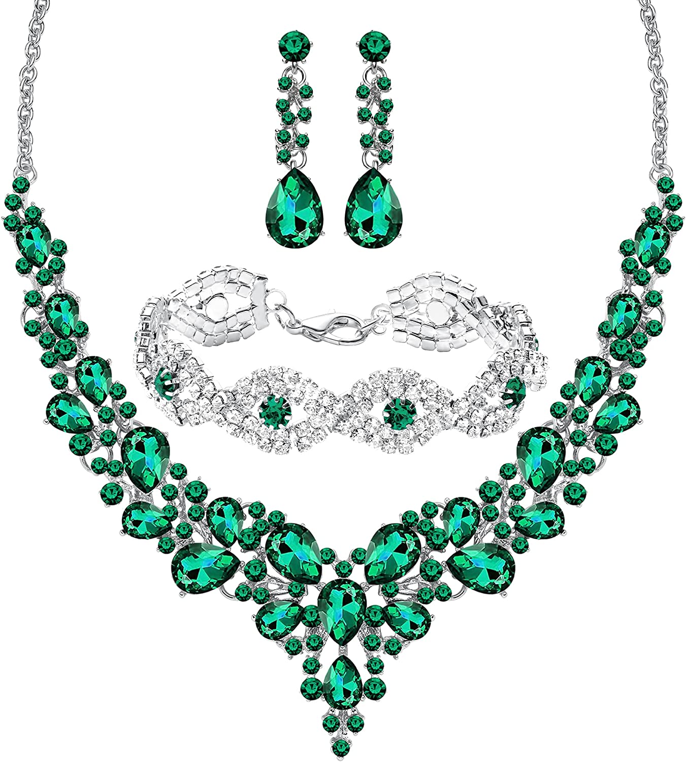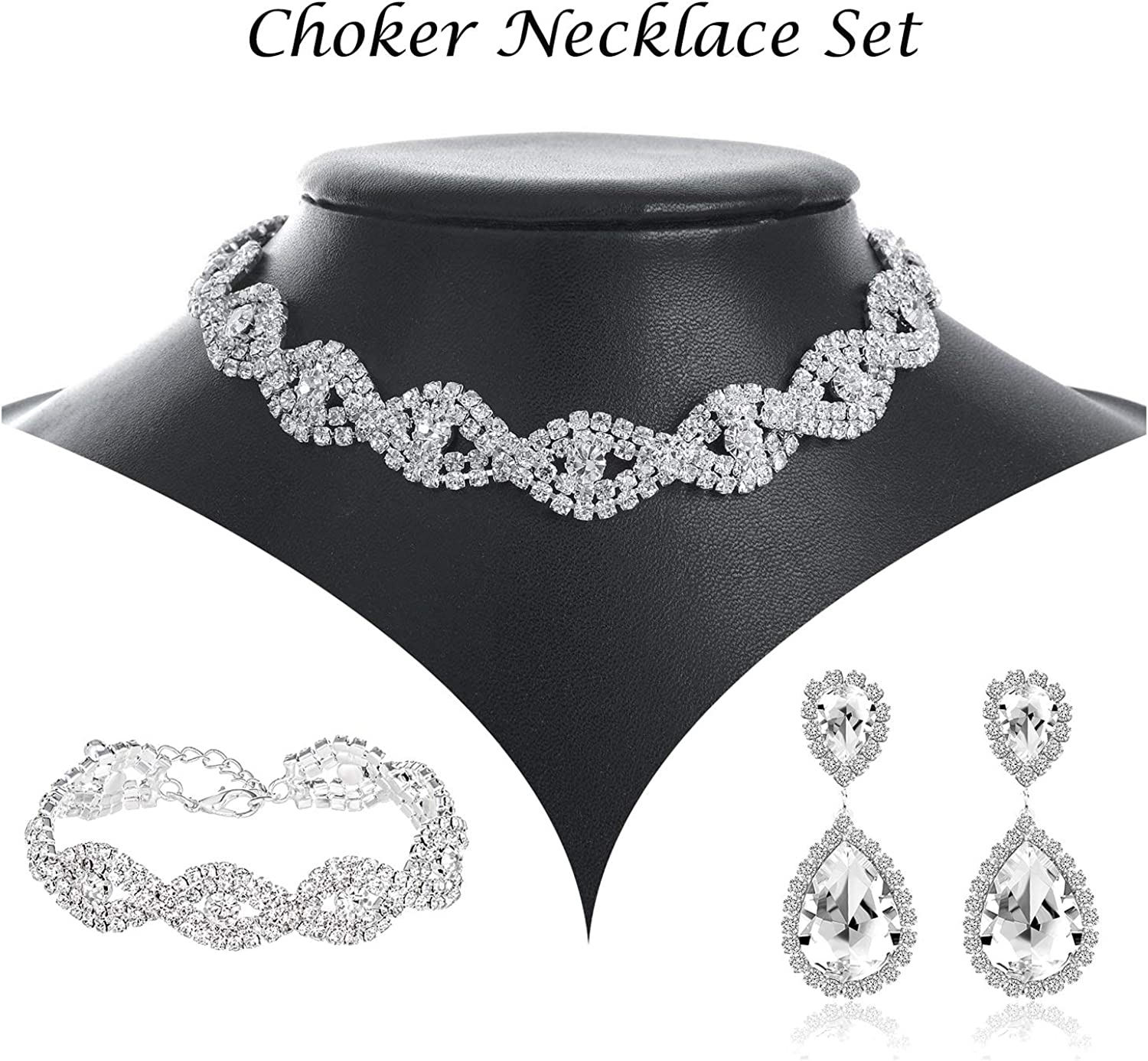 • ❤ Unique Design ❤: 3 Pack Jewelry Sets, Rhinestone Crystal Choker Necklace Link Bracelet Teardrop Dangle Earrings.With a fabulous design and solid construction.the classic and elegant always keep pace with fashion,which will make a timeless accessory to any jewelry collection. can be worn with classy casual with formal attire or Wedding dress, never goes out of style.