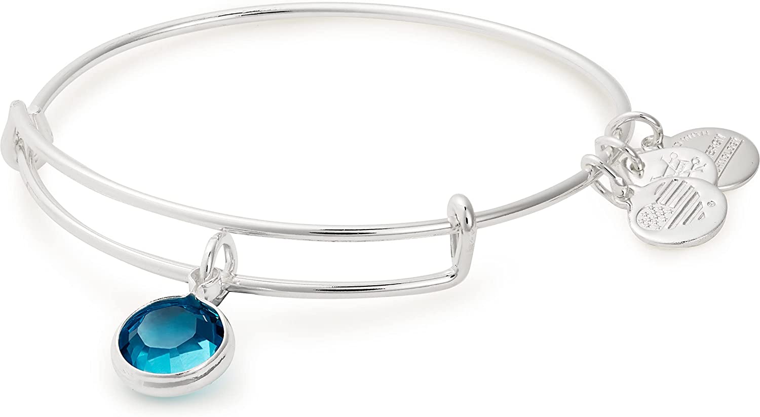 Alex and Ani Birthstones Expandable Bangle for Women, Crystal Charm for Every Month, Shiny Finish, 2 to 3.5 in
