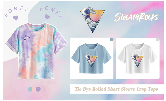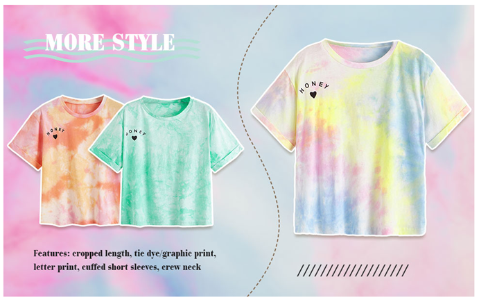 SweatyRocks Women's Tie Dye T-Shirt Rolled Short Sleeve Crop Tops