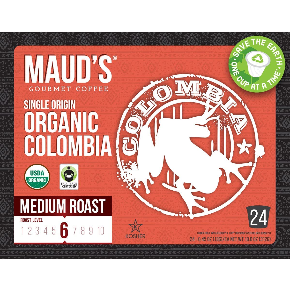Maud's Organic Colombian Coffee (Organic Medium Roast Coffee), 24ct. Solar Energy Produced Recyclable Single Serve Fair Trade Single Origin Organic Coffee Pods - 100% Arabica Coffee, KCup Compatib